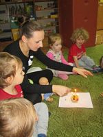 Wspólnie z Ciocią Asią przedszkolaki liczyły i dmuchały świeczki