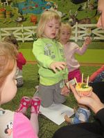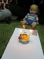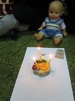 na urodzinowym torcie lalki, uczyły się, że należy zachować