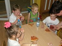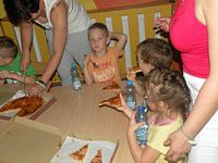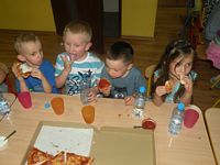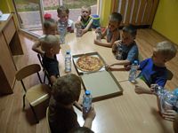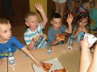 Po wieczornych harcach nadszedł czas na kolację, równie nietypową jak cała noc. Zamiast kanapek czy płatków, na stołach zagościły pizze o różnych smakach.