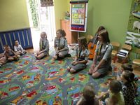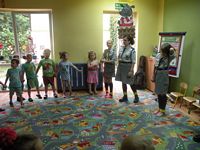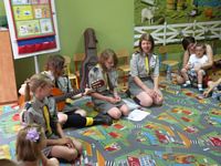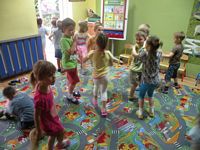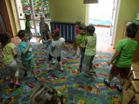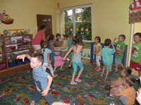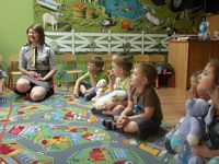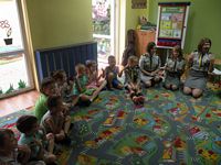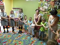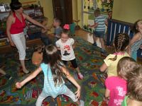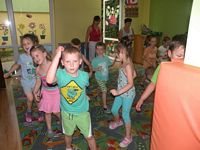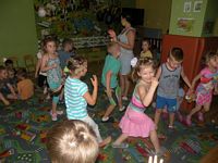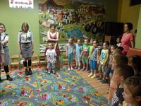 Nocna przygoda zaczęła się od wspólnych zabaw i pląsów, które prowadzone były przez Harcerki. Po harcerskim pożegnaniu maluchy dały się ponieść rytmom swoich ulubionych piosenek.