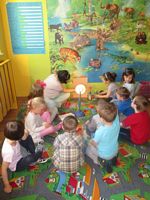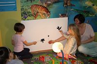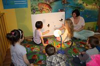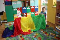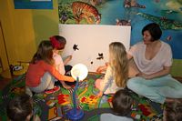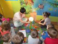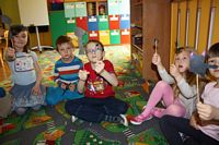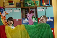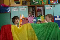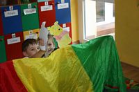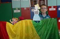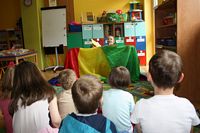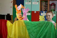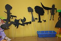 papierowe kukiełki (bohaterowie bajek, zwierzęta, rośliny), by móc nimi