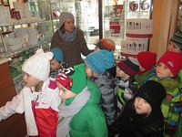Pani farmaceutka zaciekawiła dzieci informacjami na temat tajników pracy farmaceutów. Przedszkolaki dowiedziały się skąd się wzięła „aptekarska dokładność”, z czego produkuje się lekarstwa oraz, że pod żadnym pozorem nie wolno samemu połykać tabletek, nawet kiedy wyglądają jak cukierek.