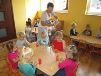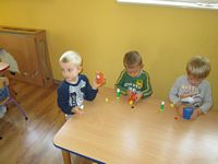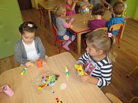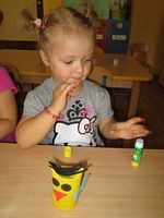 Na zajęciach plastycznych Smerfy i Słoneczka wykonały piękne sowy.