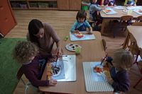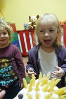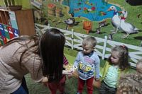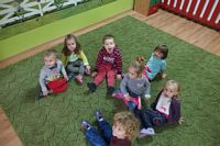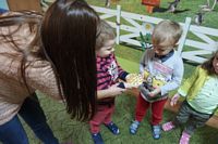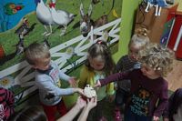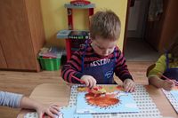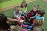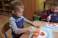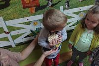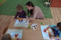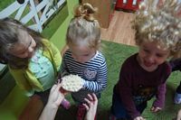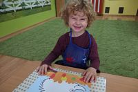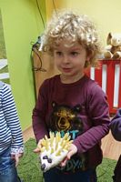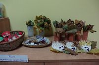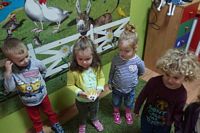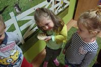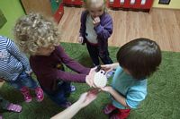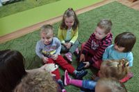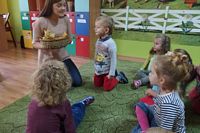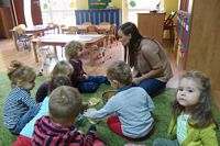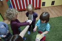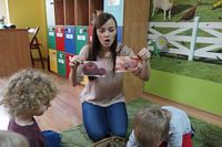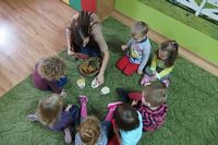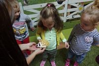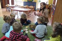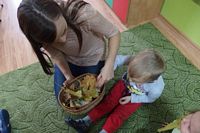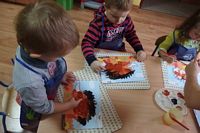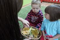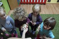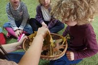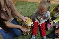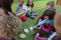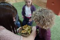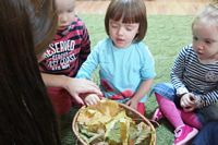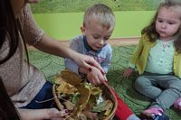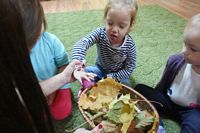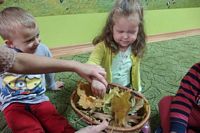 odgadywały co jest ukryte pod liśćmi wykorzystując zmysł dotyku.