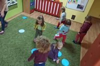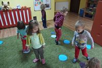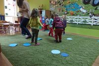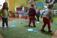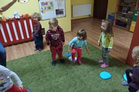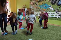 Przedszkolaki ćwiczyły swoją zwinność omijając jesienne kałuże,