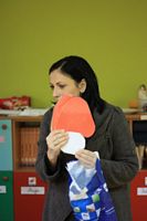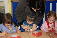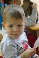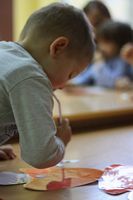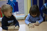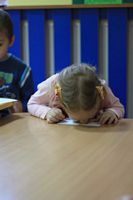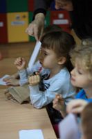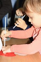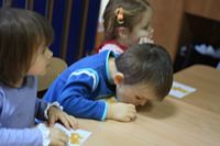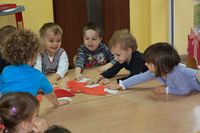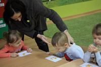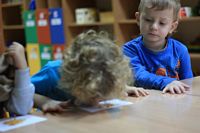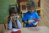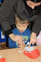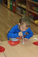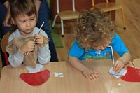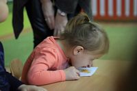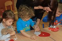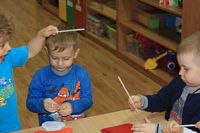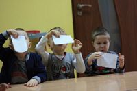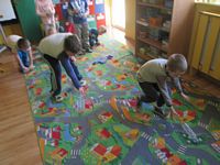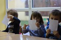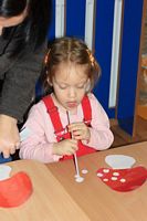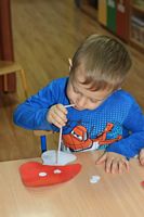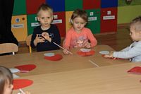 Kolejnym zadaniem dla przedszkolaków było przenoszenie kropek na muchomorki