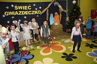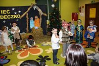 W dniach 17 - 19.12.2013r. dzieci z każdej grupy pięknym występem jasełkowym, wprowadziły swoich bliskich oraz zaproszonych gości w czas oczekiwania na Święta Bożego Narodzenia. Oglądający goście nie kryli wzruszenia. Spotkanie przepełnione było radością dzieci oraz wzruszeniem rodziców, dumnych ze swych pociech. Występy uwieńczone zostały słodkim poczęstunkiem.
