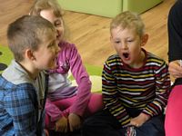 Na zajęciach logopedycznych PSZCZÓŁKI ćwiczą regularnie swój aparat mowy,