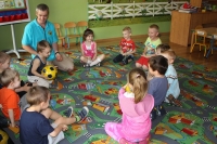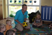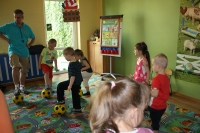 W czwartek 13 czerwca 2013r. nasze przedszkole odwiedził Pan Paweł promujący zajęcia sportowe z wykorzystaniem piłki dla przedszkolaków pod hasłem „Przedszkole I Piłka”