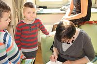 W dniu 08.04.2013 "Motyle" i "Misie" wzieły udział w autorskim spotkaniu z Renatą Piątkowską, które odbyło się w Oddziale dla Dzieci i Młodzieży Miejskiej Biblioteki Publicznej w Tomaszowie Mazowieckim. Dzieci miały okazję poznać autorkę swoich ulubionych opowiadań i dowiedzieć się w jaki sposób powstają książki. Na koniec spotkania dzieci mogły nabyć książki Pani Renaty Piątkowskiej, na których autorka złożyła własnoręczny podpis wraz z dedykacją.