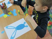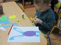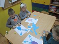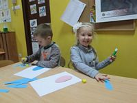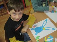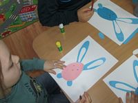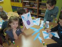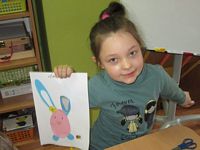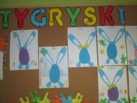 Tygryski wykonały piękne prace plastyczne - zajączki z papierowego jajeczka.