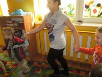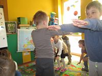 Dzieci w czasie zajęć uczą się prostych obcojęzycznych słów,