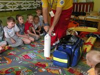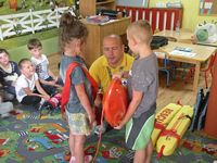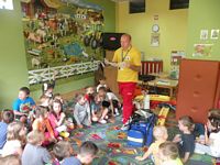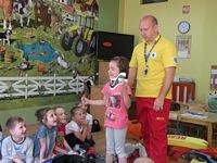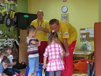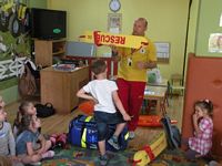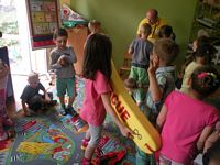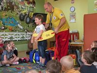 We wtorek 25 czerwca 2013r , nasze przedszkole odwiedzili ratownicy WOPR. Panowie opowiedzieli dzieciom na czym polega ich praca, zapoznali maluchy z zasadami bezpiecznej kąpieli. Przedszkolaki miały możliwość zapoznać się ze sprzętem ratowniczym używanym na co dzień przez jednostki ratownicze WOPR.