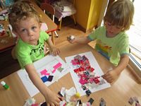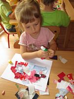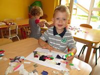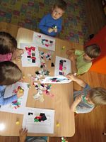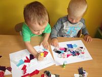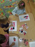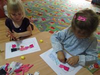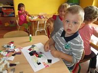 Po wysłuchaniu wiersza dzieci wykonały z kawałków materiałów pracę plastyczną