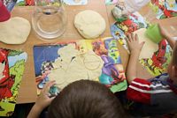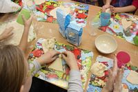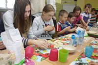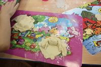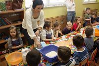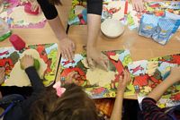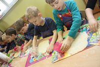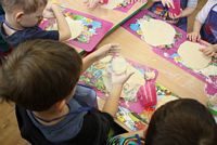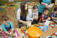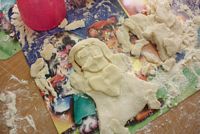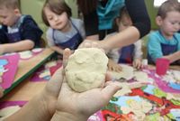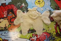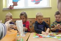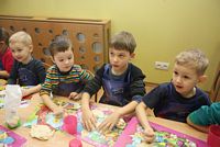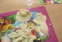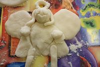 W ferie zimowe Przedszkolaki odwiedzili goście - gimnazjalistka Martynka z siostrą Zuzią pokazały jak można w prosty sposób wykonać aniołki z masy solnej